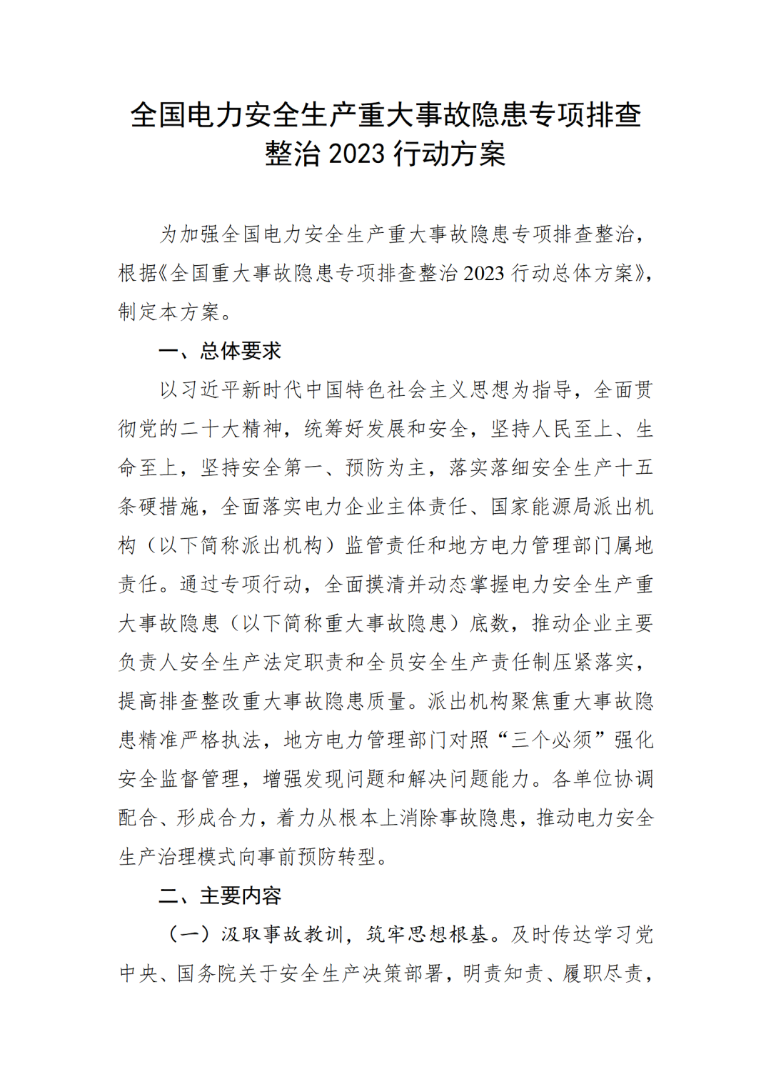 附件:全國電力安全生產(chǎn)重大事故隱患專項(xiàng)排查整治2023行動(dòng)方案